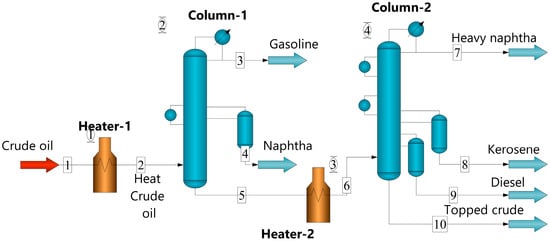 - More, R.K.; Bulasara, V.K.; Uppaluri, R.; Banjara, V.R. Optimization of crude distillation system using Aspen Plus: Effect of binary feed selection on grass-root design. Chem. Eng. Res. Des. 2010, 88, 121–134. [Google Scholar] [CrossRef]