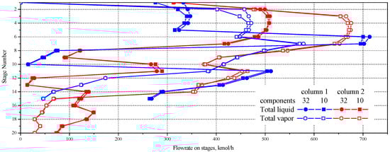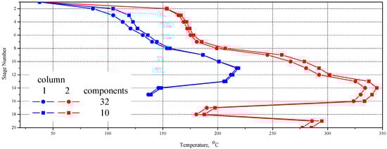 | Column-2 | Number of trays (including a dephlegmator—tray no. 1)–16 | Pressure at the top of the column 1.59 bar, pressure drop in the column 0.14 bar |