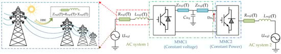 Modular multilevel converters (MMCs) have wide-ranging potential applications in high-voltage direct current (HVDC) transmission due to their advantages of modularity, scalability, high efficiency, and high-quality voltage waveform [1]. However, lots of MMC-HVDC projects often suffer from the resonance problems, which arise during both debugging and operation stages, significantly affecting the safety of the power system [2,3]. To solve these problems, modeling MMC-HVDC systems and analyzing their small signal stability have become the hottest topic in recent years.
