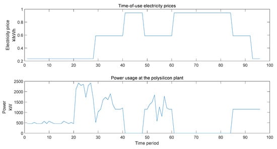 As process-oriented industrial actors, polysilicon companies have strict sequential requirements to their production process. The start and stop times of production equipment must follow a pre-determined schedule, and once operation begins, the power supply cannot be arbitrarily cut off [1]. To ensure the timely and sufficient completion of product orders, these companies are generally not highly motivated to participate in incentive-based demand response programs, such as direct load control, which may disrupt normal production [2,3,4]. However, price-based demand response interferes less with electricity users and can guide them to proactively adjust their electricity usage behavior without significantly affecting their comfort. Therefore, utilizing time-of-use electricity pricing and real-time price signals to encourage polysilicon companies to shift their electricity consumption and avoid peak production times has become an important means of fully leveraging their demand response potential [5,6,7,8].