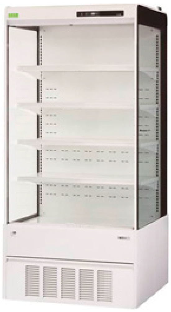 In the development of the refrigeration system model, reference was made to the RSD-4TFK5J model refrigeration unit manufactured and sold by Sanden Retail Systems Corporation. The appearance of the actual machine is shown in Figure 1. The machine consists of a storage compartment in the middle, a sensor device on the top, and a temperature control unit at the bottom. Temperature within the storage compartment is monitored through a temperature sensor located at the very top, and based on the data acquired, temperature management within the storage compartment is conducted in the temperature control section.