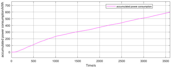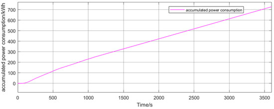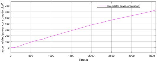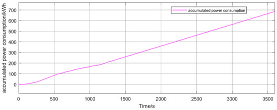 As illustrated in Figure 7, a triangular learning rate adjustment policy is adopted, where the learning rate cyclically varies between a minimum of and a maximum of . As depicted in Figure 8 and Figure 9, upon visual inspection, the shape of the temperature curve approximately matches that of the temperature variation curve from the experiment with a fixed learning rate, as shown by Equation (5). However, in terms of cumulative power consumption, compared to 727 kWh consumed by the model with a fixed learning rate curve, the model utilizing the triangular learning rate policy consumed 685.8 kWh of electricity. The training was completed after approximately 16 h. This represents an efficiency improvement of 5.7%. Nevertheless, due to the higher associated with the triangular policy compared to the fixed learning rate, this level of energy-saving effect is not particularly pronounced.