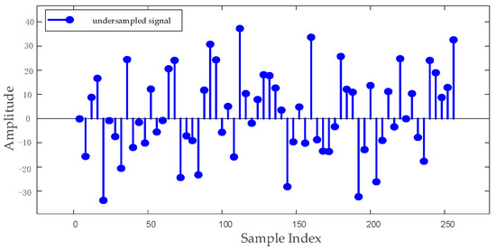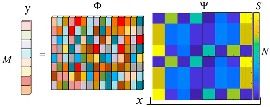 where, is a sparse basis matrix; is denoted as the projection of the signal onto the sparse domain and is called the sparse coefficient. If the original signal is sparse in the -base (there are only nonzero terms, where ), the expression for the observation model for compressed perception is obtained by combining Equations (1) and (2):