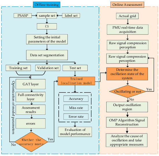According to the broadband oscillation localization model proposed in Section 2.2, the specific flow of the broadband oscillation localization method implemented in this paper based on compressed sensing and GAT algorithm is shown in Figure 8, in which the offline training steps are as follows: