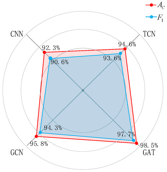 From Figure 4, it can be clearly seen that the GAT algorithm with multi-attention mechanism has outstanding ability to learn topology and feature information in the TSA model, and the model accuracy is as high as 98.5%, which is 6.2% higher than the correct rate of the CNN model; and its omission rate and misjudgment rate have been significantly improved compared to the other models, which fully illustrates the effectiveness of the GAT algorithm proposed in this paper in the TSA model. The advantages of the algorithm proposed in this paper over other previous algorithms in the field can be clearly compared from Table 4.