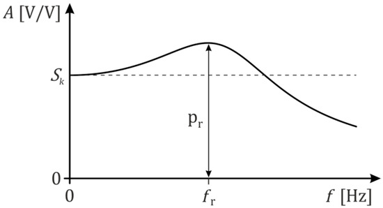 Figure 1 shows an exemplary amplitude–frequency response as a function of frequency, where and denote the resonance frequency and resonance peak, respectively. These parameters are typical variables for accelerometer modeling based on the amplitude–frequency response.