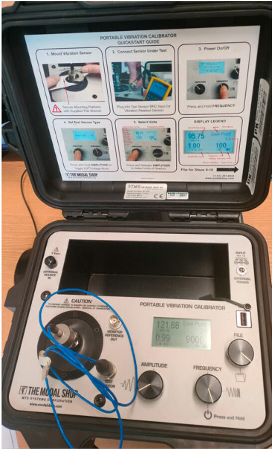 - Datasheet for Portable Calibrator 9110D Series. Available online: https://www.modalshop.com/docs/themodalshoplibraries/datasheets/9110d-portable-vibration-calibrator-datasheet-ds-0103.pdf?sfvrsn=202f7b45_7 (accessed on 3 October 2024).