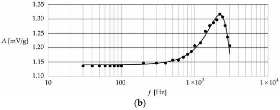 This paper presents a method of modeling accelerometers based on an iterative Levenberg–Marquardt procedure, which is used for regression of the amplitude–frequency response measurement points according to the least squares principle [21,22]. This procedure combines the Gauss–Newton and steepest descent methods and is, therefore, extremely effective for nonlinear regression tasks, such as determining the amplitude–frequency response. The solutions presented in this paper are based on the measurement points of this response and are obtained by using the same portable calibrator as applied in the classical calibration of accelerometers.