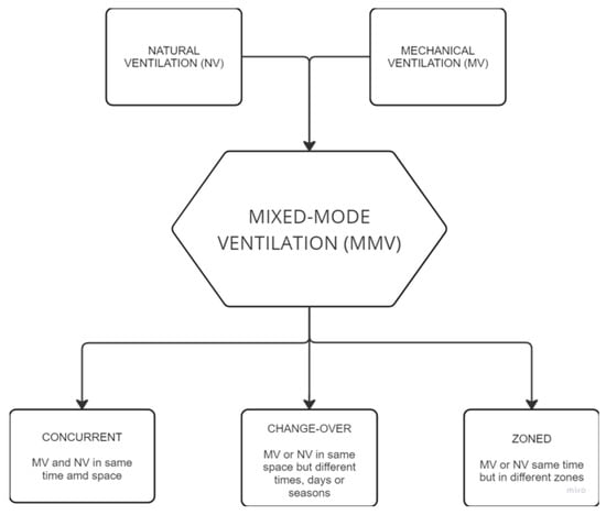 This review aims to explore the effectiveness of MMV systems and identify key control strategies, technologies, and system configurations for implementation in school buildings. It will analyze components like natural and MV types, sensors, controls, and the role of advanced technologies like artificial intelligence. Understanding these elements is crucial for designing and implementing adaptive MMV systems in school environments. The structure of this review is illustrated by Figure 1.