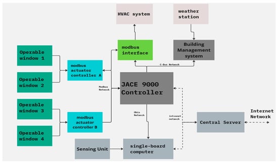 A research investigation undertaken by Khatami et al. [29] deduced that the implementation of automatic control systems markedly contributed to the mitigation of risks associated with inadequate IAQ. The incorporation of automated NV controls within the framework of MMV resulted in an 85% reduction in the duration during which CO2 concentrations exceeded 1200 ppm. When juxtaposed with manual control mechanisms, automatic controls facilitated superior IAQ conditions; the findings of this research indicated that the deployment of automated control in MMV contributed to an 8% decrease in energy consumption. Nonetheless, the efficacy of this outcome is contingent upon the performance and adaptability of the control algorithm. With a feedback mechanism to provide channels for occupants to give feedback on comfort levels, the system can continuously be improved to be more efficient [29]. Figure 8 shows an advanced automated control architecture.