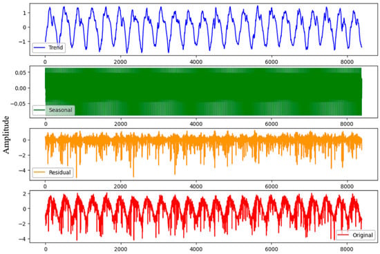 Exploratory data analysis was performed on the training data to gain deeper insights into the data characteristics and uncover underlying patterns. Figure 2 illustrates the decomposition of the time series data into three components: trend, seasonal, and residual, along with the original data.