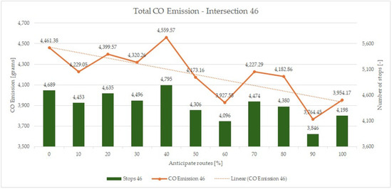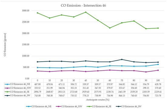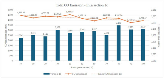 Analysis of all CO emission variants according to the number of vehicles—Intersection 46.