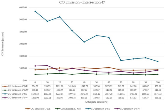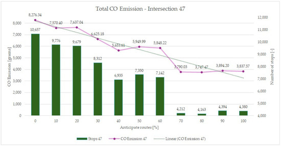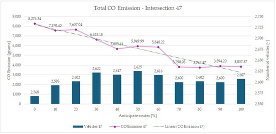 Analysis of all CO emission variants according to the number of vehicles—Intersection 47.