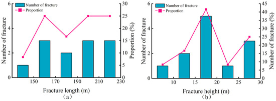 Microseismic monitoring of (a) fracture length distribution results and (b) fracture height distribution results.