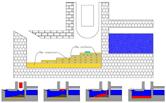 EU-APR1400, the 1400 MWe advanced PWR designed by the Korea Electric Power Corporation (KEPCO), with an EVR strategy [10] is proposed to the European market instead of the original one, the APR-1400 with an IVR design. As shown in Figure 4, the core catcher designed in EU-APR1400 is briefly similar with BiMAC, consisting of three parts that are integral: a metal catcher that is covered by a sacrificial layer, declining cooling channels and an injection system. The shape of the carbon steel catcher is rectangular (about 6 m wide, 16 m long and 1.5 m high), and the shape of the cross-section is “V” type with a 10-degree inclination angle. The cooling channels in the core catcher of EU-APR1400 are some gaps between the elevated core catcher and the wall of the reactor cavity. Under severe accident conditions, coolant is supplied through the distributor under the catcher from the storage tank by gravity; then, it turns up into gaps to cool down the catcher and finally rises over the catcher to flood the molten pool inside. In this way, corium debris receives stable cooling and long-term retention. Rhee et al. [21] and Park et al. [22] evaluated the two-phase natural circulation flow in cooling channels of the ex-vessel core catcher for EU-APR1400 and presented how the diameter of pipe system impacts natural circulation, concluding that oscillatory flow exists in circulation.