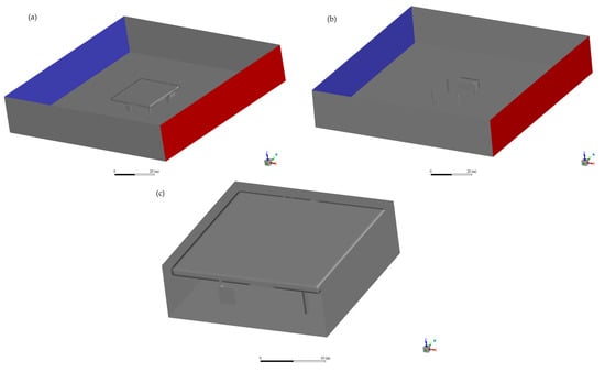 Three computational domains: (a) Typical HRS, (b) Open-Air HRS, and (c) Confined HRS.