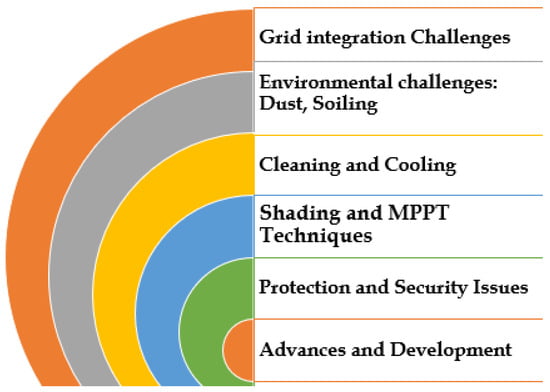To meet the rapidly rising energy demand and reduce blackouts, several nations must urgently increase their electricity generation [1]. According to the IEA report, global electricity demand is anticipated to expand at a 3% yearly rate from 2023 to 2025, significantly outpacing the growth rate observed in 2023 [2]. The utilization of fossil fuels as the primary source of climate change accounts for more than 75% of global releases of greenhouse gases and almost 90% of carbon dioxide emissions. In order to prevent the worst effects of global warming, emissions must be cut by almost half by 2030 and achieve net zero by 2050. The International Renewable Energy Agency (IRENA) projects that by 2050, renewable energy sources should supply 90% of the world’s electricity. Although renewable energy is gaining traction, fossil fuels still generate more than 80% of global energy, with renewables currently providing about 29% of electricity. Solar photovoltaic (PV) technology is particularly popular in the market due to its clean and renewable characteristics [3]. Solar is the most commonly and widely used renewable energy technology. PV technology has been evolving and has a large scope in many developing countries like India. This motivates us to find the obstacles and challenges in expanding the PV system technology.