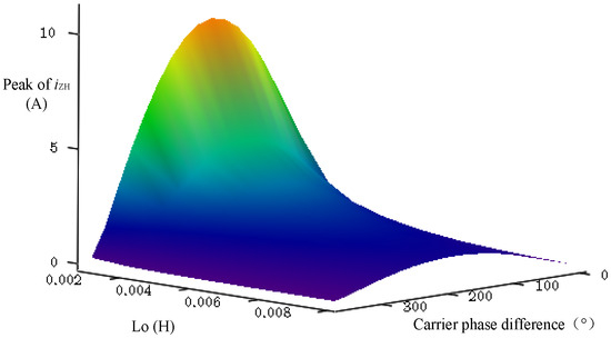 According to (6), Figure 8 plots the peak value of the HF-ZSCC as a function of connection inductance Lo and carrier phase difference θ, where L1, Udc, and the other parameters used are listed in Table 1.