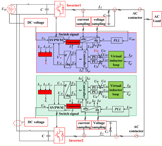 Control block diagram of the parallel inverters with the proposed composite suppression strategy.