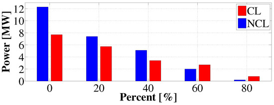 To differentiate between CLs and NCLs, a penalty factor is implemented with a different value for the two types of load such that . Hence, the last term of (19) can be reformulated by replacing the scenario-based penalty of load shedding