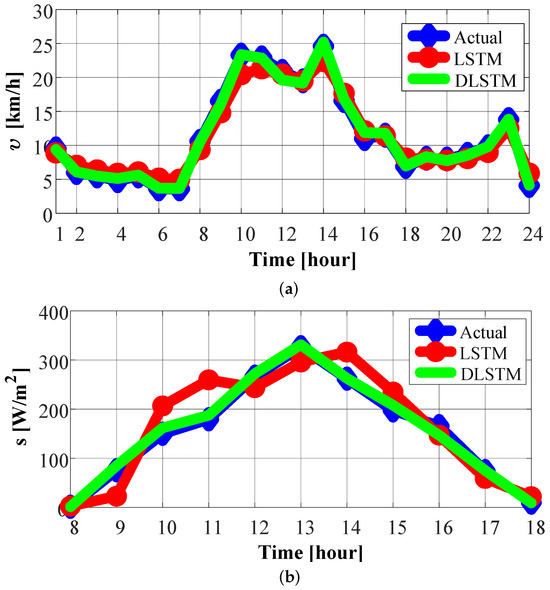 The operation of the DLSTM model can be illustrated as follows: the variable is random and non-stationary; the high randomness and fast variation of wind speed make it difficult to estimate wind speed data directly using the conventional method shown in Figure 1a. As shown in Figure 1b, a pre-processing model based on the DLSTM splits the entire data set into several time intervals for each day. This allows more effective forecasting and mitigation of the adverse effects of the stochasticity of and s.