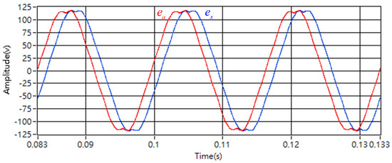 In Figure 3b, it can be clearly observed that phase-x lags phase-a by 0.00139 s. At a speed of 600 rpm and with a motor pole count of 12, the electrical frequency is 60 Hz. Therefore, a lag of 0.00139 s corresponds to an electrical angle of 30 degrees, which verifies that the phase voltage of phase-x lags behind that of phase-a.