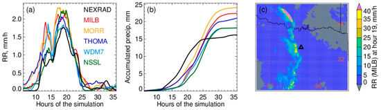 - Fan, J.; Han, B.; Varble, A.; Morrison, H.; North, K.; Kollias, P.; Chen, B.; Dong, X.; Giangrande, S.E.; Khain, A. Cloud-resolving model intercomparison of an MC3E squall line case: Part I—Convective updrafts. J. Geophys. Res. Atmos. 2017, 122, 9351–9378. [Google Scholar] [CrossRef]