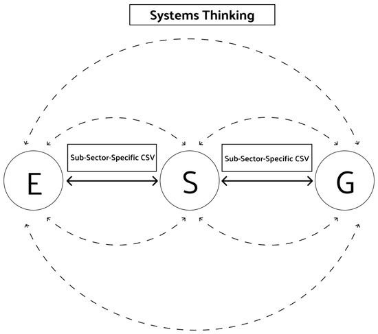 E, S, and G interconnections with systems thinking and CSV approaches.