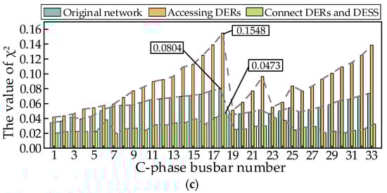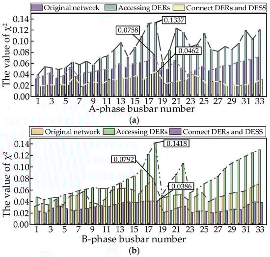 The integrated voltage deviation index , as shown in Equation (22), is introduced to reflect the improvement of the feeder voltage quality brought about by the integration of the DESS into the distribution network system.