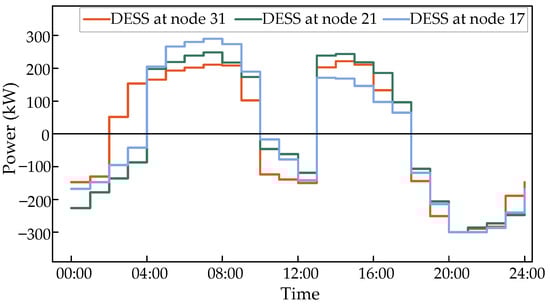 To explore the charging and discharging behavior of the DESS in Case 5, the charging and discharging curves of three groups of DESSs are shown in Figure 10.