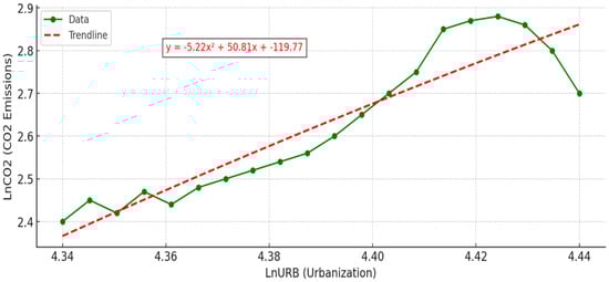 In Asian countries, ref. [17] examined the fundamental connection between urbanization, energy use, and carbon emissions, finding a strong positive correlation between urbanization and carbon emissions. In Southeast Asia, ref. [26] investigated the relationship among energy use, carbon emissions, and urbanization, concluding that urbanization is a source of environmental emissions. Studies on urbanization’s impact on carbon emissions suggest that urbanization can be beneficial for environmental development when robust economic growth propels the nation to a specific level. For example, refs. [27,28] found a significant negative relationship between urbanization and carbon emissions when analyzing data from sub-Saharan African nations. Ref. [29] found similar results in East Asian countries, while [30] presented consistent findings.