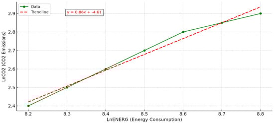 This study demonstrates urbanization’s dual impact—driving emissions through energy demand while offering opportunities for sustainable development. Ref. [27] showed a positive correlation between urbanization and CO2 emissions but also emphasized the potential for urban planning to mitigate these impacts. Sustainable urbanization strategies, such as energy-efficient infrastructure and green spaces, are crucial to reducing the ecological footprint of expanding cities.