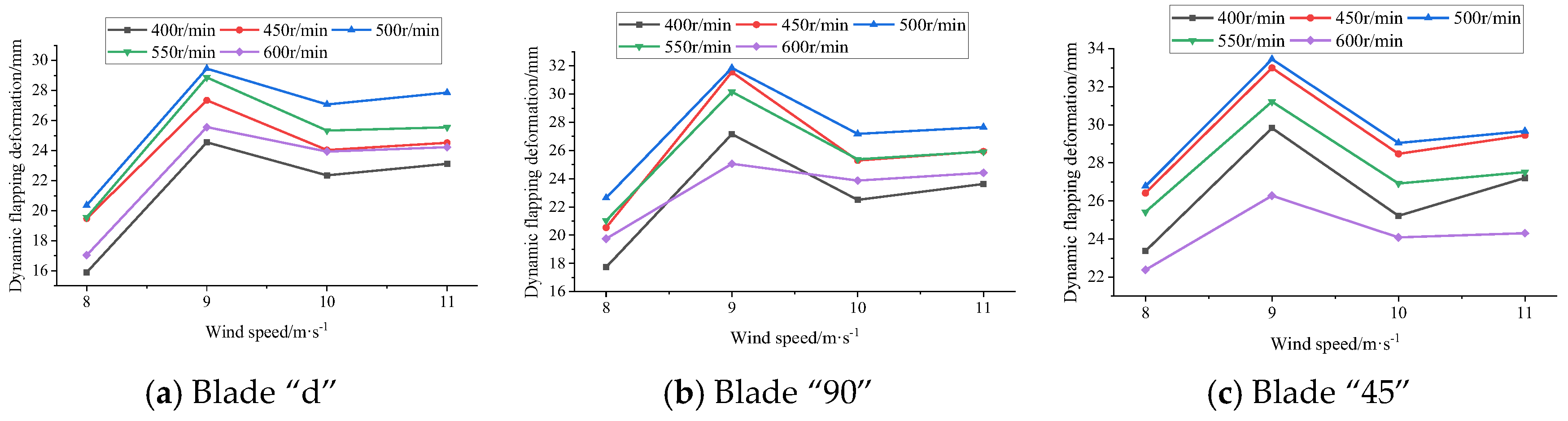 1]. Blade deformation is divided into waving deformation, torsion deformation, and oscillation deformation, of which the amount of oscillation deformation and torsion deformation is relatively small. Wind turbine operating conditions have a certain effect on blade deformation [