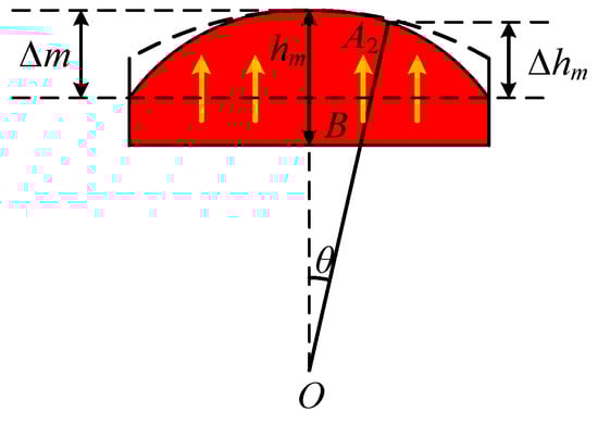 The adoption of third harmonic injection to modify the permanent magnet can reduce the decrease in average torque while maintaining low cogging torque, thereby ensuring good torque performance. However, third harmonic injection significantly affects the air gap length and the air gap magnetic density. If the harmonic injection is not appropriate, it may lead to an increase in cogging torque and torque ripple. Therefore, it is essential to determine the suitable third harmonic injection amplitude to achieve torque output. The application of harmonic injection in the permanent magnet is shown in Figure 9. The maximum value of the outside radius OA2 is determined by the amplitude of the third harmonic injected into the permanent magnet. Although the outside radius OA2 varies with the position angle θ, its maximum value, along with the maximum thickness of the permanent magnet hm, remains constant at 38.5 mm and 5 mm, respectively. With the injection of the third harmonic, the variation in the permanent magnet thickness Δhm(θ) can be expressed as