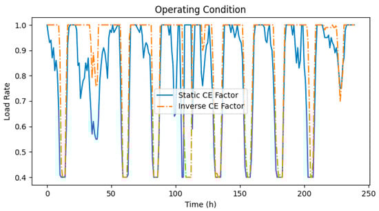 Under the planning conditions utilizing the dynamic carbon emission factor, the installed capacity and output of coal-fired power units exceed those derived from the static carbon emission factor. This result suggests that the dynamic carbon emission factor provides a more accurate representation of the emission characteristics of coal-fired units across varying load rates, thereby allowing for greater flexibility and adaptability in their scheduling during the optimization process. As shown in Figure 4, the dynamic factor enhances the operational characteristics of coal-fired units by precisely capturing their lower emission behavior under efficient operating conditions. This leads to a reduction in carbon emissions per unit of electricity generated, while still maintaining system-wide carbon emission constraints.
