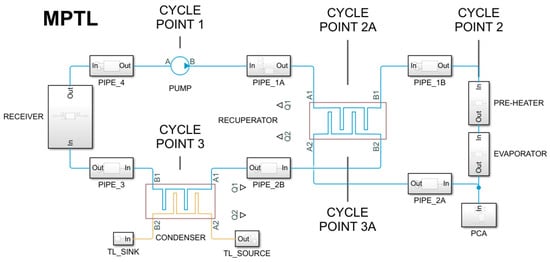Figure 3, each subsystem denoted ‘PIPE_#’ contains a Pipe (2P) component. The assumptions of the Pipe (2P) component include fully developed flow, negligible influence of gravity, and no fluid inertia effects [
