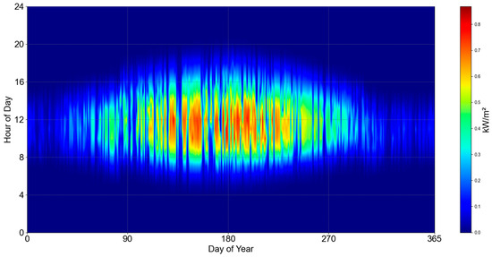 Poland is located in a temperate climate zone with four distinct seasons. Seasonal variability leads to significant changes in weather conditions throughout the year. The most favorable solar conditions are found in the southeastern part of Poland, including the area where the analyzed Rest Area Stobierna is located. The average solar irradiance in this region is 2.4 kWh/m2/day, with nearly 80% of sunlight hours occurring in the spring and summer months [39].