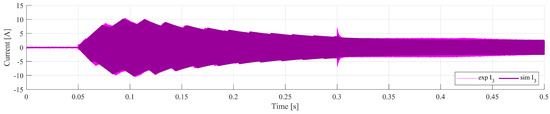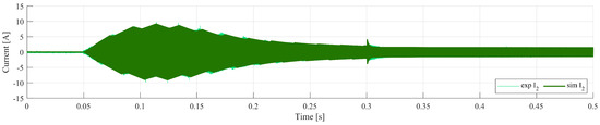 The proposed start-up procedure has been initially simulated to avoid the damaging risk of charging inrush currents on active bridges. The simulation results concerning the currents on MFT were then compared with the experimental tests. The results, reported in Figure 8 and Figure 9, show an overlapping between the simulation and experimental underlining that the peak of currents and achieves 8 and 10 A, respectively, well below the current limits of power electronic components implemented. Moreover, they confirm the strength of the simulation tool developed.