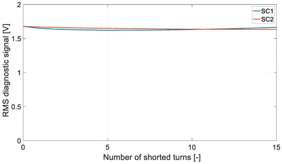 In the case of SC2, there is a noticeable reduction in the value of the electromagnetic torque produced. Figure 10 shows the RMS value of the diagnostic signal.