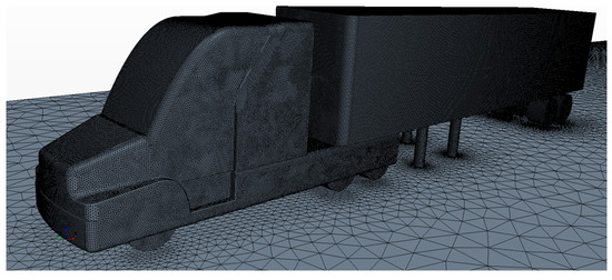 Triangular surface meshes are created to represent the surface of any HDVs in the virtual wind tunnel. Figure 3 presents the surface meshes for a single HDV. Through a process of mesh independence iterative refinement, the size of the triangular surface meshes was determined to be 4.4 mm, to better balance the accuracy and the computation load of our CFD model.