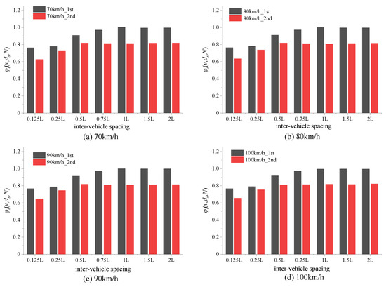 Impacts of inter-vehicle spacings on φi(v, ds, N) at a speed of 100 km/h.
