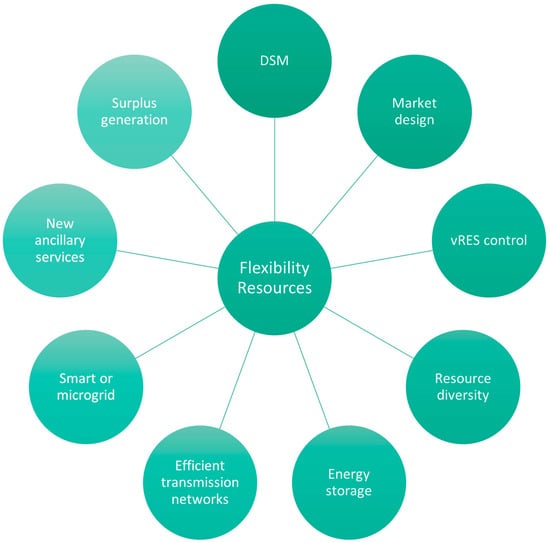 Power system flexibility (PSF) commonly reinforces the whole system to be capable of compensating the real-time supply–demand mismatches [21] and plays a role in evolving affordable, reliable, sustainable, and clean power systems. Therefore, it initiates the resulting need to increase the flexibility of the system to avoid inconveniences like power failure in the power system and to increase the dependability of the power system. As PSF is an important factor in the utility power grid, understanding different aspects of the PSF drivers, resources, and requirements will be useful for researchers, academicians, scientists, and engineers of smart power systems to further penetrate the conventional power grid with VRES.