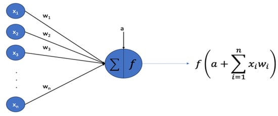 Figure 2 illustrates a neuron and shows the inputs x1 to xn, the bias a, and the activation function f applied to the weighted sum of inputs.