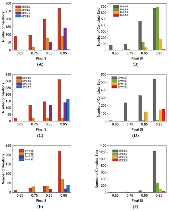 In general, for both functions, adjusting the delta parameter to 0.0001 resulted in fewer iterations and produced fewer complete sets, with exceptions mainly in the final SI = 0.95.