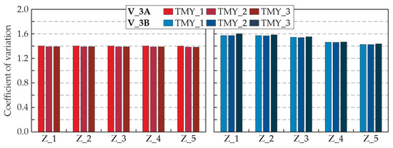 - for TMY_1: from 0.9% to 0.1% for Z_1, from 2.2% to 0.8% for Z_2, from 3.2% to 1.5% for Z_3, from 3.3% to 2.1% for Z_4 and from 2.5% to 2.1% for Z_5;
