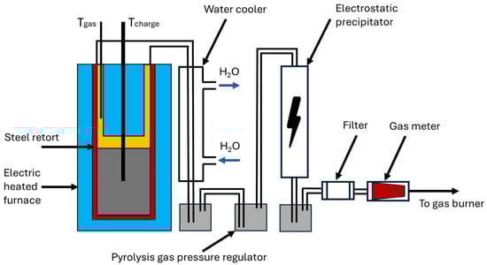 The bio-coke production tests were carried out for 2, 6, 10, and 20% charcoal addition for gravity charging conditions (low density) and compacted coking chamber filling system (high density). To achieve proper homogenization of coal/biomass blend, both coking blends and charcoal were crushed to the grain size of c.a. 95% < 3.15 mm. Before carbonization tests, all blends were moisturized to the fixed moisture content of 10%. Carbonization tests were carried out with the use of Karbotest installation designed to simulate the industrial coking process. The Karbotest installation (Figure 1) is an electric heated vertical tubular oven designed for producing metallurgical coke under laboratory conditions that closely mimic industrial processes. A blend of coal and biomass, weighing approximately 4 kg, is charged into a steel retort (with a depth of 850 mm and an inner diameter of 150 mm) by either gravity- or stamp-charging methods. The retort is then placed in the hot oven, where it is heated until the temperature at the center of the charge reaches 950 °C. The bio-coke is maintained at this final coking temperature until gas production falls below 0.5 dm3/min. Following this, the oven is turned off, and the retort remains inside for self-cooling to ambient temperature. The next day, the bio-coke is extracted and prepared for further analysis.