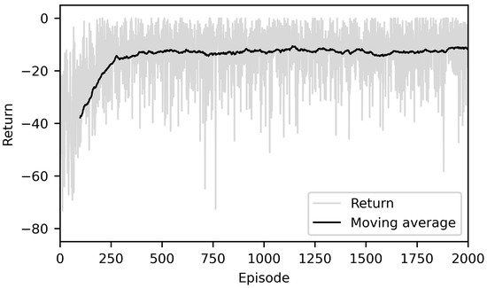 In this subchapter, the RL training process is investigated. The training process for the parameters from Table 2 is shown in Figure 6.
