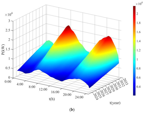 Charging load prediction serves as the data source for EVCS planning, and this module is typically studied as a distinct topic [4,5]. The study in [6] provided an extensive survey of nine different EV charging load forecasting methods and provided the first comprehensive comparison of these forecasting methods to offer samples for Day-Ahead Market (DAM) optimization. The study in [7] proposed a multi-step short-term forecasting model for charging loads (TDformerBCMG model), in order to address the issue of reduced forecasting accuracy caused by dispersed load data. In [8], two different models—Random Forest and Artificial Neural Networks—were utilized for load forecasting at various spatial levels, and two different cases were simultaneously studied. The obtained results demonstrated that an increase in the case size enhanced the accuracy of load forecasting and uncertainty estimation simultaneously. The study in [9] presented an EV charging load prediction model that can reflect the real-time traffic situation, effectively predicting the charging load and driving loss of the EV fleet in the current state, while also providing ideas for power restoration in the event of a paralyzed traffic network. In [10], four-time slots were used to select the dataset during the data preprocessing stage, and machine learning techniques were employed for load prediction.