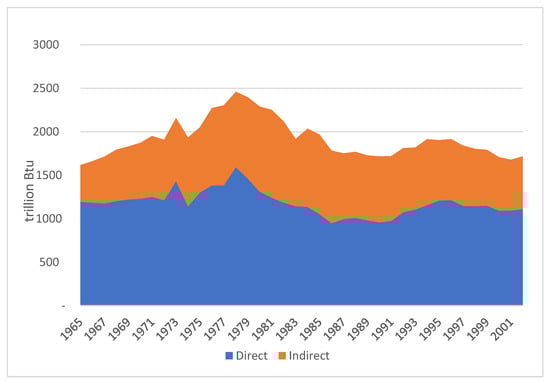 Historical trends in direct and indirect energy use in U.S. agriculture in the period 1965–2001. Source: elaboration based on [98].