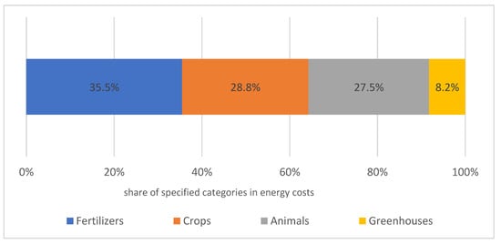 Value of energy costs and share of specified farms' categories in total energy cost in the EU farming sector (direct and main indirect costs, i.e., fertilizers and feed). Source: own elaboration based on [115].